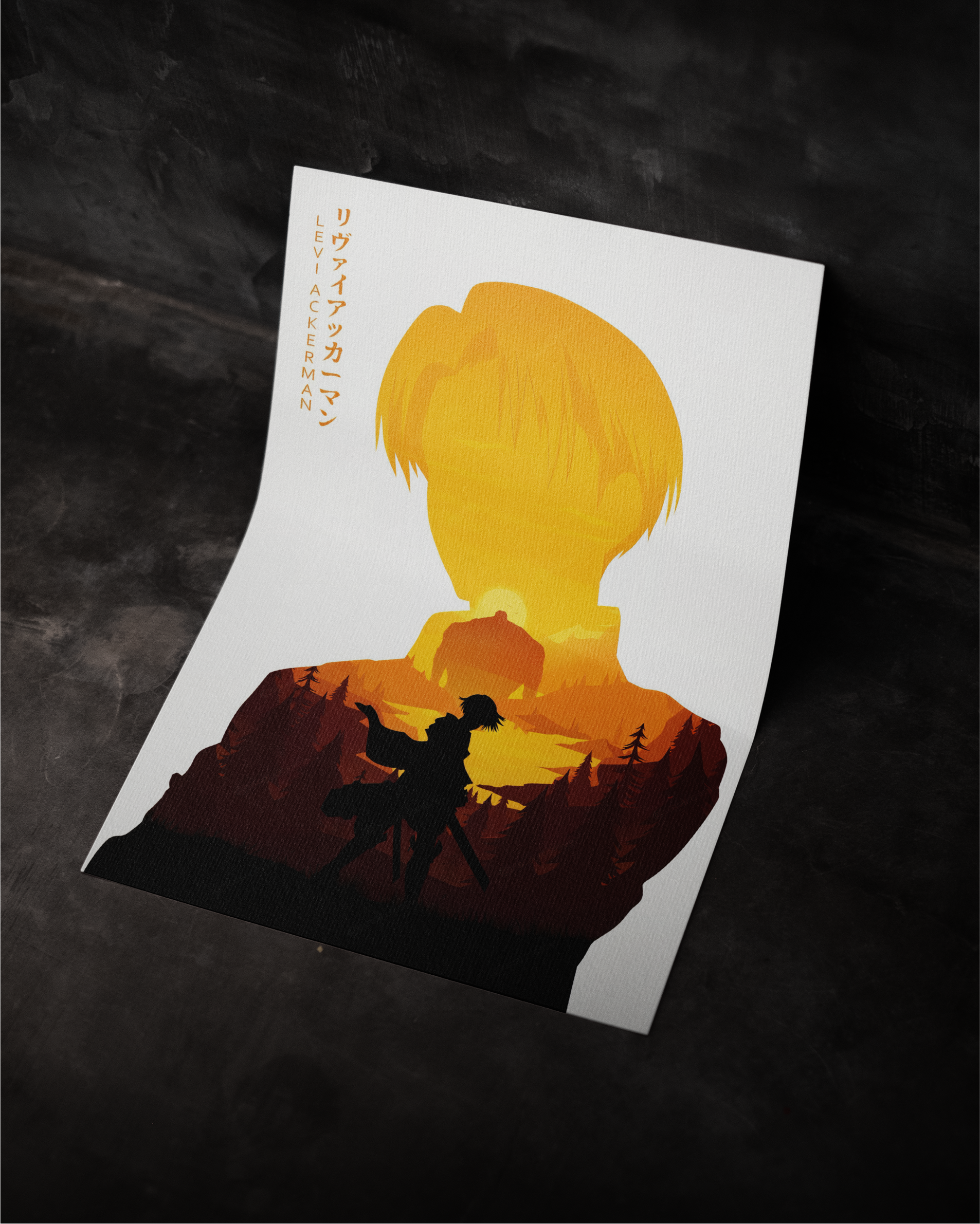 Strike with precision and grace with this powerful Levi Ackerman poster, capturing the humanity's strongest soldier mid-battle, eyes cold and blades drawn. Every detail—from the Survey Corps cloak to the spinning momentum of his ODM gear—reflects Levi’s unmatched skill and unshakable resolve.